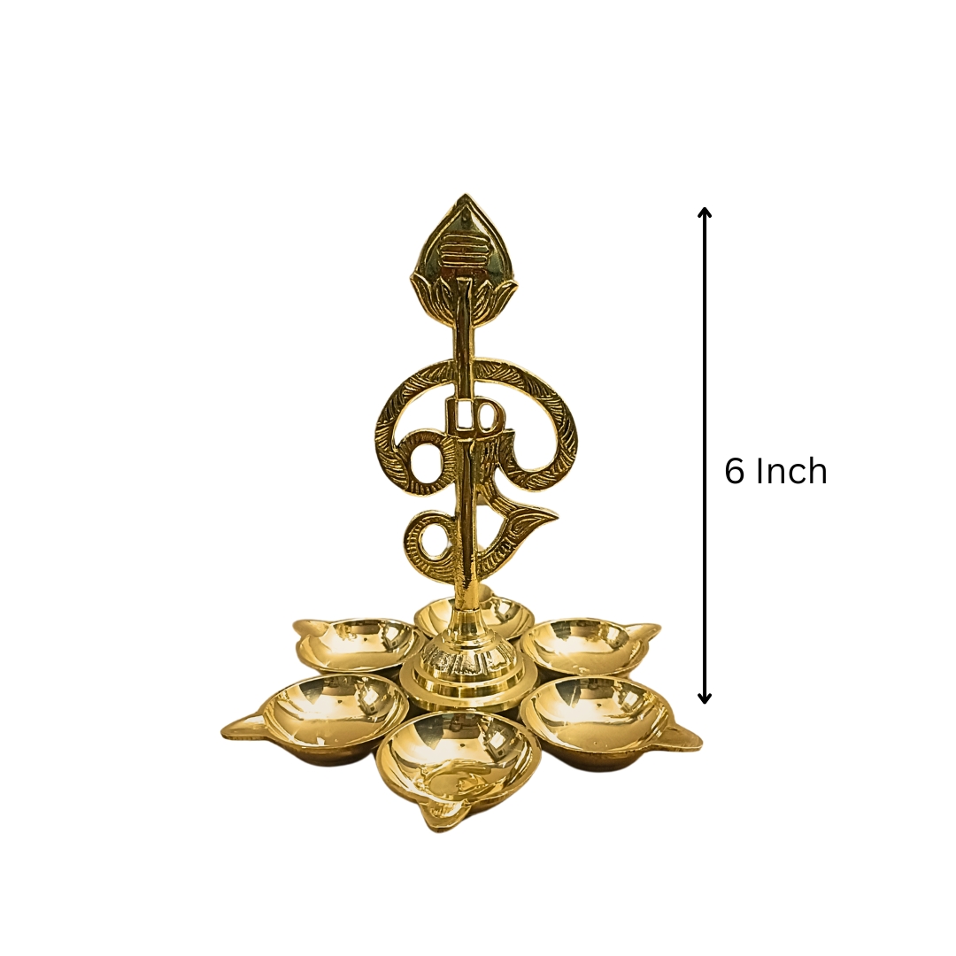 6-Inch Om Vel Arumuga Vilakku & 10-Inch Brass Pooja Plate Combo
