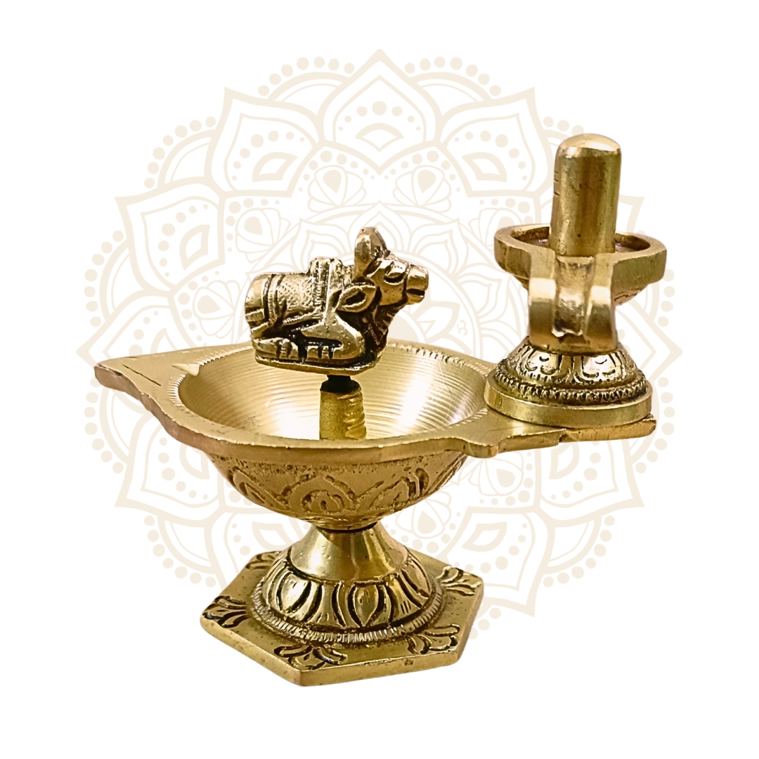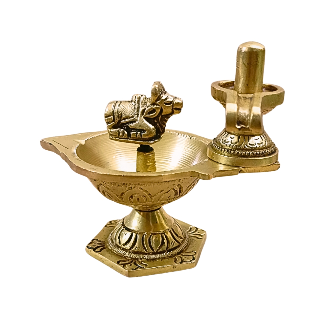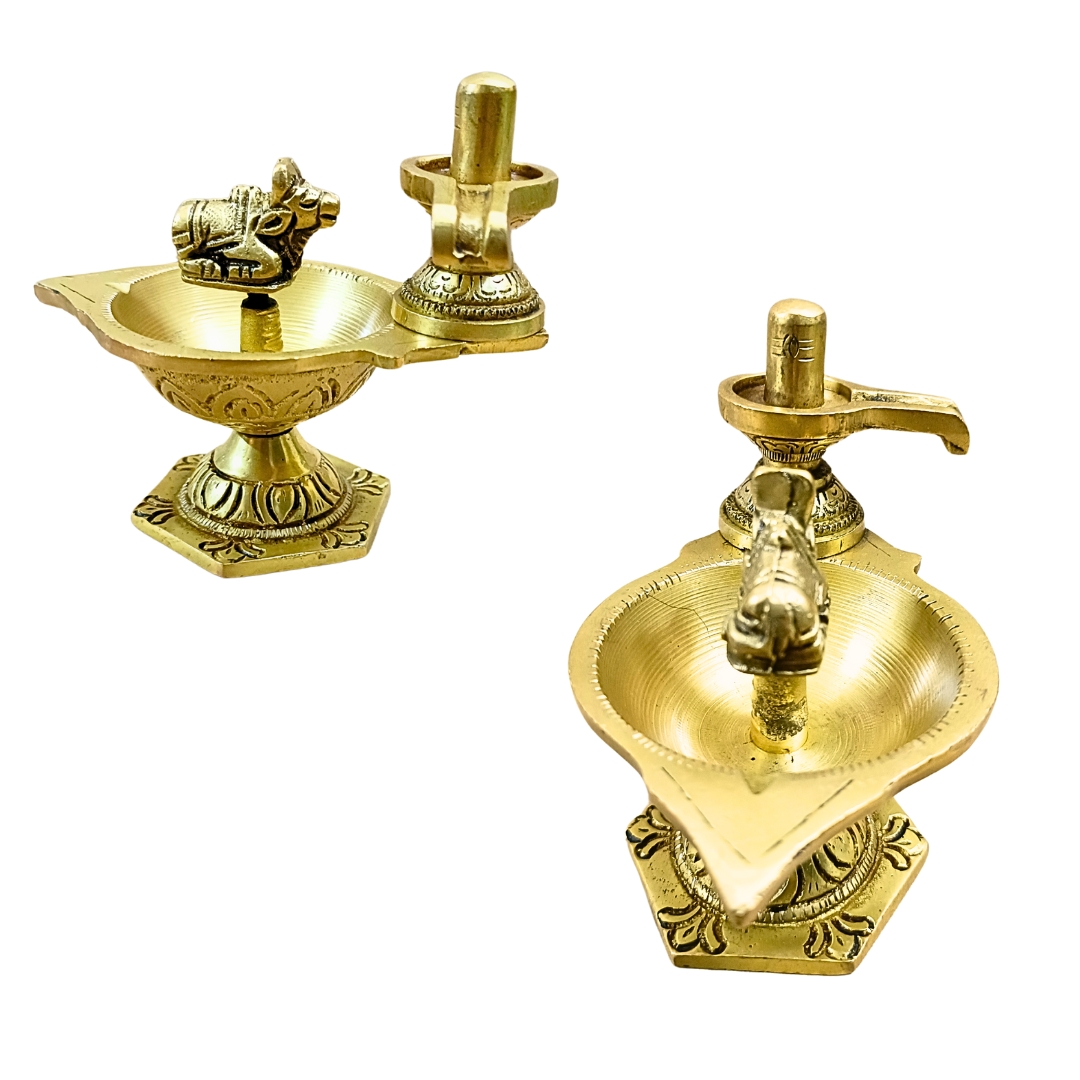 Package Includes: 1 Brass Pradosha Vilakku with Nandi and Shiva Lingam